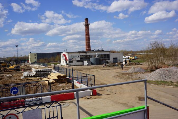 Сразу очевидно, что строительство ведётся на месте промзоны, её «наследство» в виде старых ангаров до сих пор колет глаз посетителям стройки. По словам застройщика – ангары постепенно сносят, в отличие от парящей по соседству ТЭЦ. К ней, собственно, будут подключены новые дома, без неё никак, но и пейзаж она изрядно портит.