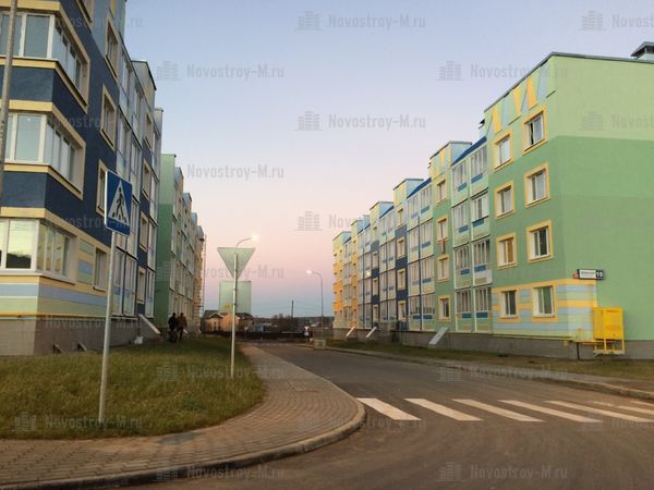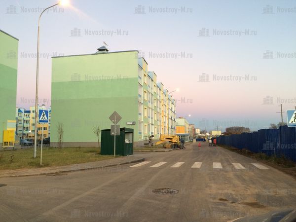 Высота всех корпусов не превышает четырех этажей. Возведение микрорайона предполагает три очереди строительства. Первая (11 корпусов) была сдана в декабре 2014 года сдана и заселена в августе этого года (летом около 50 семей заселились), окончание строительства второй – I квартал 2016 года.